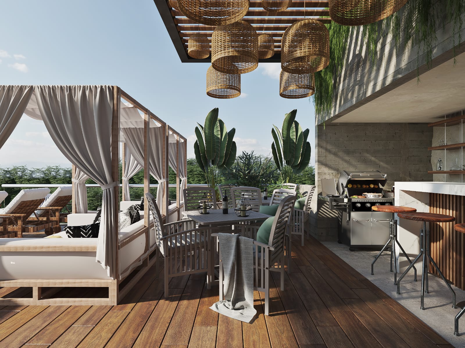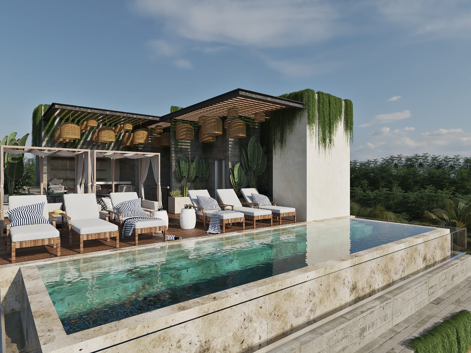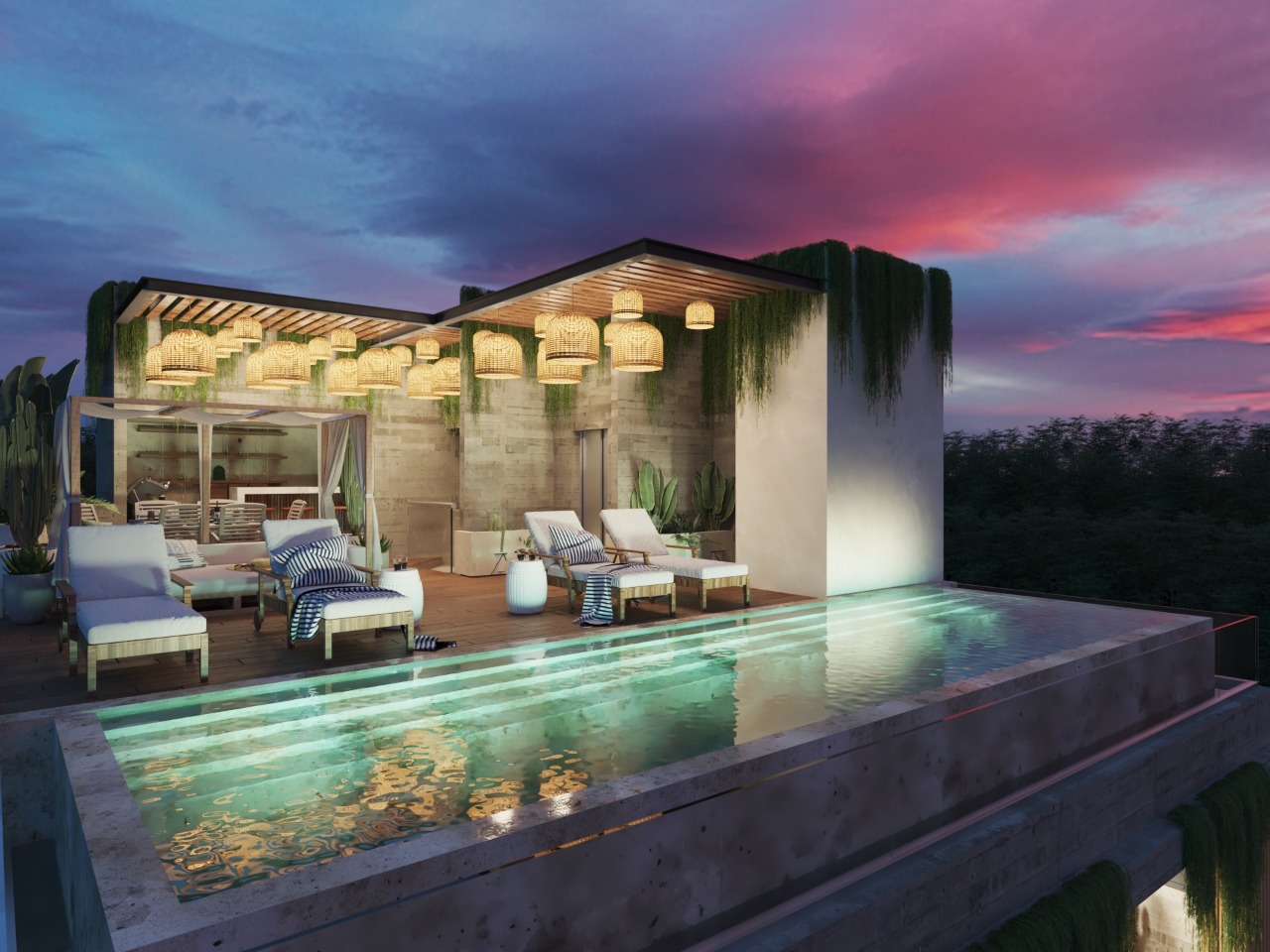 Un condominio exclusivo de 7 niveles con 20 departamentos de lujo totalmente amueblados con llave en mano, a unos pasos de la playa,restaurants y tiendas en la mejor área de Playa del Carmen.
