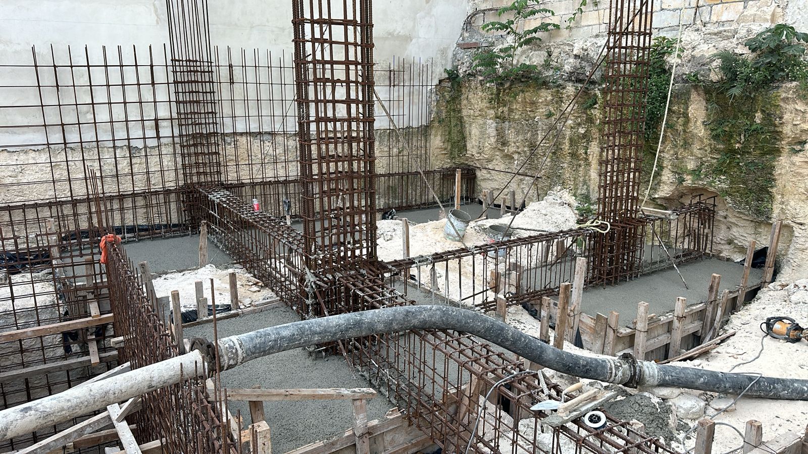 Vaciado de cimientos, estacionamiento subterraneo, PB y primer nivel.